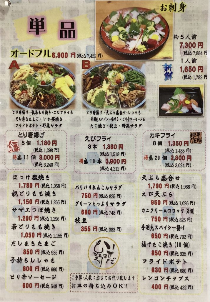 単品メニュー