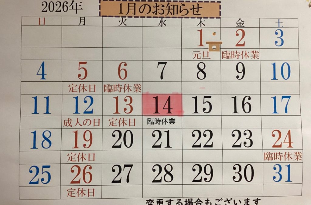 1月の店休日