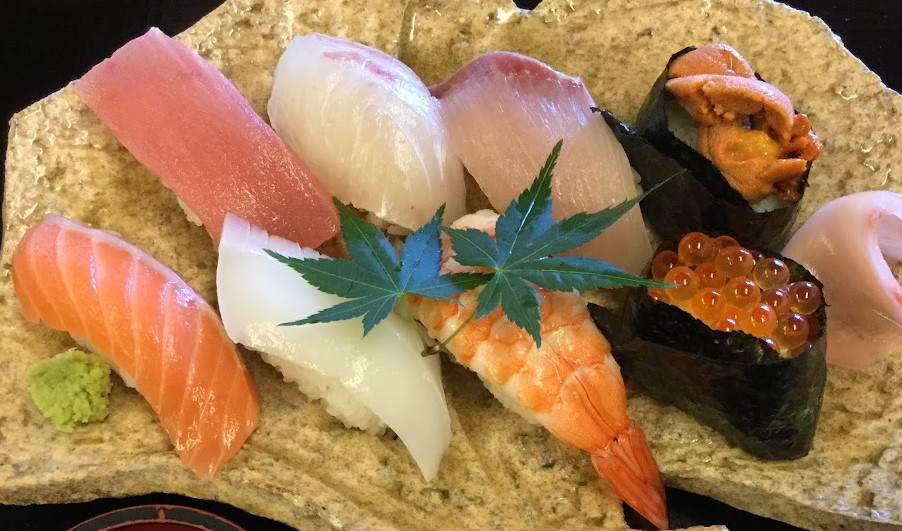 《大ネタにぎり寿司》白身魚、海老、いか、マグロ、カンパチ、うに、いくら